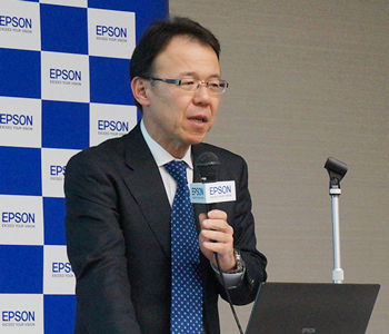 発表会でエプソン販売の佐伯直幸代表取締役社長は「国内のインタラクティブプロジェクター市場、ホームプロジェクター市場ではシェアNo.1だが、今回の新製品により、高光束プロジェクター領域でもシェアNo.1を獲得したい」と語った。