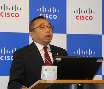 シスコシステムズ(シスコ、鈴木みゆき社長)は4月6日、記者会見を開き「Cisco Start」ブランドにクラウドサービスを追加すると発表した。今回、シリーズに追加する製品は、Web会議システム「Cisco WebEx」と、クラウドWebセキュリティ「Cisco クラウドWebセキュリティ(CWS)」。Startシリーズのハードウェアとセットにして特別価格で提供する。中小企業の課題の一つである人材不足をテレワークによって解決し、魅力ある職場環境の整備・構築の支援を目指す。販売は従来同様パートナー経由で行う。キャンペーン適用時の参考価格として、WebExは年間1ライセンス25ユーザーの通常購入参考価格を8万7000円としているが、今回のキャンペーンでは1ライセンス3万7900円で提供する。販売は2ライセンス、7万5800円から。CWSは1ライセンス3980円で25名以上から。販売目標数などは明確にしていない。