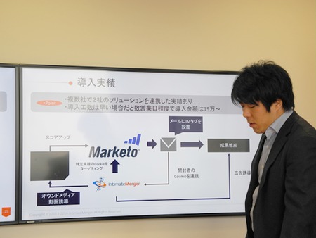 マルケト(福田康隆社長)は4月13日、インティメート・マージャー(IM、簗島亮次社長)と六本木のマルケトオフィスにて共同会見を開き、マルケトのエンゲージメントマーケティングプラットフォームがインティメート・マージャーのデータマネジメントプラットフォーム(DMP)との連携を開始すると発表した。