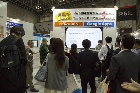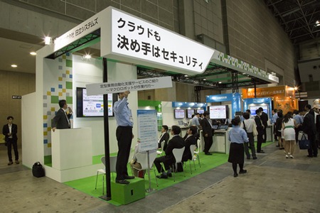 メールセキュリティを手がけるクオリティアもセキュリティに注力。クラウドメールのセキュリティを強化する「Active! gate SS」と、連動するオンラインストレージ「Active! vault SS」の2製品をメインにブースを展開する。営業本部マーケティング部の稲垣素子氏は、「導入経緯はトップダウン/担当者からともに一定数あり、ユーザーの業種や規模もあわせて傾向を捉えることは難しい。今年の来場者は情報システム担当者の割合が例年より多い感覚もあり、Office 365やGoogle Appsをはじめとするクラウド型メールの浸透度の高さを感じる」と最近の傾向を語った。「添付ファイルの自動暗号化や自働でのウェブダウンロードへの切り替えなど、七つの誤送信防止機能がITリテラシーが高くない方にも好評を得ている。指名買いいただけるケースもかなり増えた」と、今回のブース構成の狙いと事業の好調性を語った。