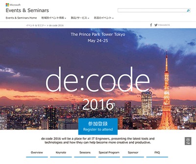 de:code 2016では、クラウドとモバイルの活用で広がるビジネスの可能性をキーノートセッションで明らかにするほか、実践的なノウハウを盛り込んだブレイクアウトセッションや海外からのゲストスピーカーを招くなど、グローバル水準の最新情報を提供する。