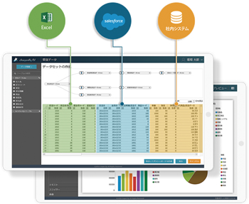 Excelデータや社内システム、クラウド上のデータなどと接続できる
