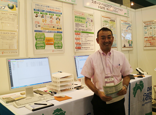スポーツジムなどの施設向けのソフトウェアなどを提供するアイサイトのブースでは、「InBody」という筋肉・脂肪や部位別筋肉量、肥満指標、体成分分析などを15秒程度で測定する機器と連携した体成分分析システム「i☆Scanner」を展示していた。「フィットネスジムやリハビリ施設、医療・福祉関連の施設などへの販売が拡大している」とした。また、これとは別に地域で多い小規模建設会社向けの「建設国保組合システム」も提案し、組合費や保険料などの自動計算で業務改善に貢献するとしていた。