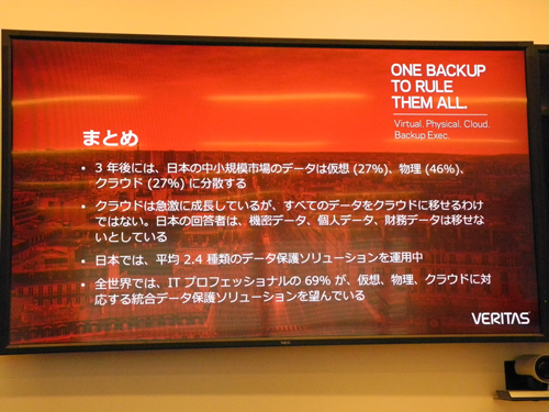 「ONE BACKUP TO RULE THEM ALL.」と、指輪物語の一説になぞらえてBackup Execの方向性を示す