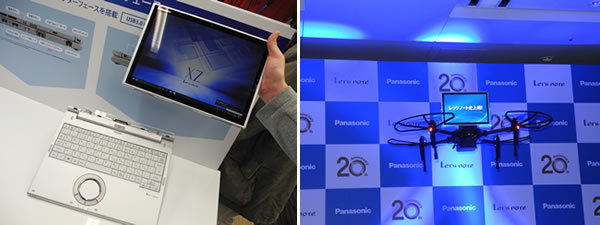 発表したXZ6シリーズ。タブレット部分は片手で持っても苦にならない軽さで、会見ではドローンに乗って登場