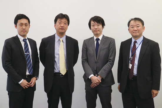 左からOBCの永盛課長代理、マジックソフトの佐藤社長、OBCの森課長、マジックソフトの渡辺マネージャ