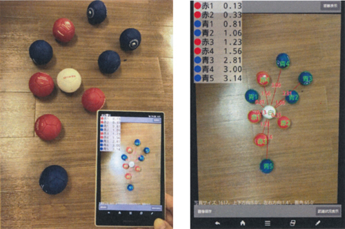 CACが開発したAndroidアプリ「ボッチャメジャー」による計測イメージ