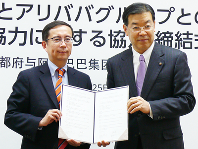 京都府とアリババグループ 「連携・協力に関する協定」結ぶ京都の産品販売や観光誘客の促進へ