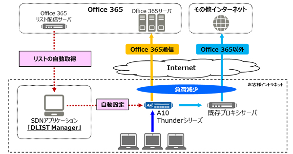 A10クラウドプロキシ+FNETS DLIST Manager ソリューションのイメージ図