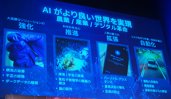 基調講演では、米インテルコーポレーションの責任者らが登壇。農業や産業など、幅広い分野でAIが「よりよい世界」を実現するとの見通しを示したほか、AIやディープラーニング向けのアーキテクチャやプラットフォームなどを説明した。