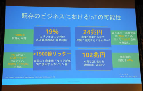 井田執行役員は、具体的な事例として諸外国でのITベンチャーの成功例を示し、「いわゆる産業革命のようなものが始まっているが、共通している点は、需要のあるエンドユーザーと供給するパートナーをマッチングするサービスとなっていること。彼らは在庫として所有する部分は最小限にとどめ、小さい規模でビジネスをスタートしている。さまざまな端末につながるネットワークとデータセンターのサービスがあって、初めて成り立つビジネスモデルだ」と分析。「IoTも、それ自体が一つの市場になるわけではなく、あらゆる産業や事業領域で変革を起こしうるプラットフォームというべき存在。データの収集ではなく、収集したデータを解析し、その結果、もたらされる新しい知識やアイデアで新しいサービスやビジネスモデルを構築することが、今後の社会に変革をもたらす」(井田執行役員)との見解を示した。