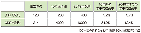 重要度の高い国家プロジェクトなだけに、大規模な政府投資と、それに伴う経済成長が予測される。雄安新区の設立通知を受けて、調査会社IDC中国は5日、同新区の発展予測を発表した。深セン経済特区と上海浦東新区をモデルケースとした場合、今後10年間の雄安新区への投資総額は5兆元で、2027年の人口は16年比2倍弱の200万人、GDPは同約20倍の4000億元強になる見込みだという。さらに、中国が建国100周年を迎える49年には、人口が300~500万人となり、「保守的にみたとしても」GDPは1兆元を突破すると予測している。