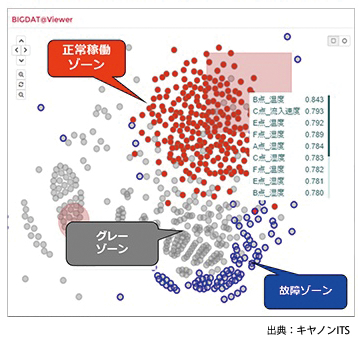 BIGDAT@Viewerは、福島県に本社を置くソフト会社toor(トア)が開発したビッグデータ解析エンジン「toorPIA(トピア)」を活用して、富士ソフトグループで製造業向けのソフト開発に強いサイバネットシステムが商品化。キヤノンITSは、製造業向けのパッケージ販売やSIに力を入れていることから、BIGDAT@Viewerの取り扱いを始めた。