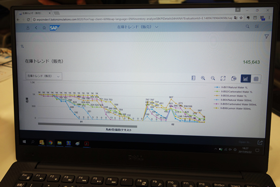 初日のプログラムのハイライトになったのが、ERPを使ったビジネスシミュレーションゲーム「ERPsim for SAP S/4HANA」の体験セッションだ。このゲームは、文字通り、S/4HANAをベースに、カナダのベイトン・シミュレーションズ(ビジネスソフトウェア活用のコンサル企業)が開発したものだ。今回の体験セッションでは、参加者は4人で一つのチームを組んだ。各チームは6種類の商品(天然水、炭酸水、レモン水、それぞれの500ミリリットルパッケージと1リットルパッケージ)を扱う飲料品の卸売業者としてビジネスを展開し、1ラウンド20日間の3セット、計60日間(ゲーム上は45秒程度で1日が経過する)で、ERPを駆使しながらどれだけの利益を上げることができるかを競い合った。チームを構成する4人は、販売価格を決定する営業担当、マーケティング費用を決定するマーケティング担当、発注を行う購買担当、各担当に方針を指示するCEOという四つの役割に分かれ、それぞれの業務にあたるという設定だ。
