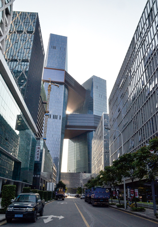 深セン湾創業広場の近辺では、テンセントの新本社など、超高層ビルの建設が進む