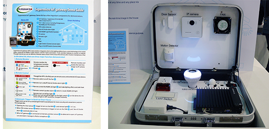 サーバーメーカーとして知られるスーパーマイクロは、マザーボードの開発力を生かした「IoTゲートウェイソリューション」を出展。スマートホームをイメージして、家電を管理・制御するデモを実施していた。(佐相彰彦)
