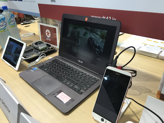 デバイスにAIを利用できるようにするためのシステム開発に取り組んでいる台湾DT42は、人の行動を認識・学習して次の行動を予測する技術を生かして、人の行動を監視しながらトラブルが発生した際に、アラートを上げるシステムを展示した。このシステムは、人の目の代わりとなって視覚障害者に道路状況を逐次伝えたり、人の動きに合わせて照明をオン/オフすることにも応用できるという。