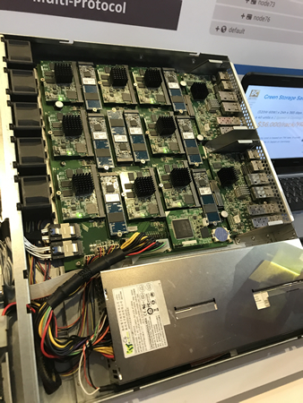 台湾GL Design Automation Company(DAC)は、測量システムを披露。ポイントは測量するためのハードウェアで、3Dプリンタできょう体をつくることで大幅にコスト削減を図ったという。一方、ハードウェアの性能を追求していたのが台湾Ambedded Technologyで、ARMベースのクラウドストレージ・コンピューティング向けマイクロサーバーをアピールしていた。