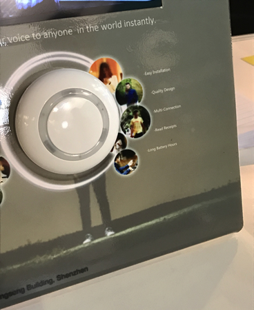 ヘルスケア関連では、台湾のHuijia Health Life Technologyが遠隔からスマートフォンやタブレット端末で子どもや高齢者を見守るシステムを展示。タイのmaker phuketは、血圧などの健康状態をリアルタイムで把握できる腕時計を出展していた。また、ありそうでなかったハードウェアという点では、中国のKaki Internationalが「Button」と呼ぶ、ボタンを押して話せば特定のSNSユーザーに、その音声を送ることができる製品公開。高齢者や子どもの利用を想定しているとアピールしていた。