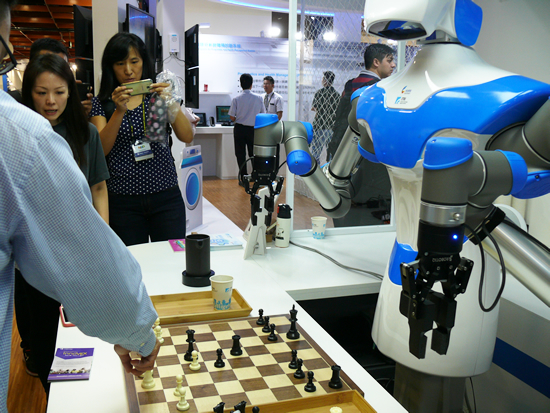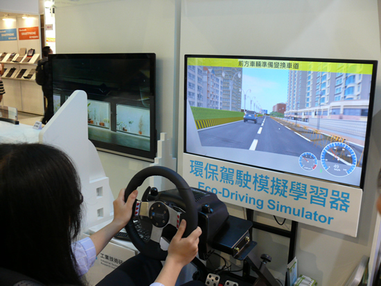 台湾経済部が設立した財団法人の工業技術研究院のブースでは、AIやドローンなどに注目が集まっていた。とくに「Intelligent Vision System for Compaion Robots」と称したAIを搭載したロボットのデモでは、人とチェスで対決、余裕で勝っていた。また、「Eco-Driving Simulator」という環境に配慮し、運転を体験できるコーナーも人気を博していた。