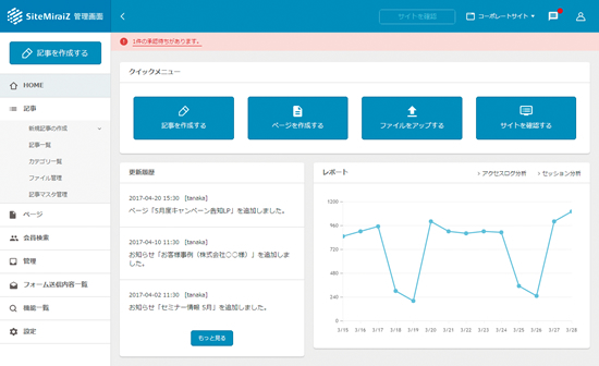 Site MiraiZの管理画面(ソフトクリエイト提供)