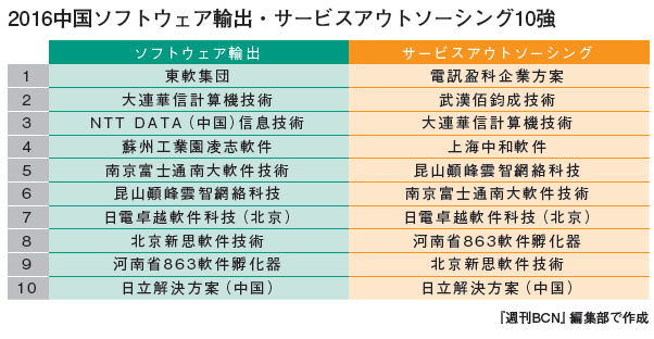 中国のソフトウェア輸出 2016年ランキングを発表