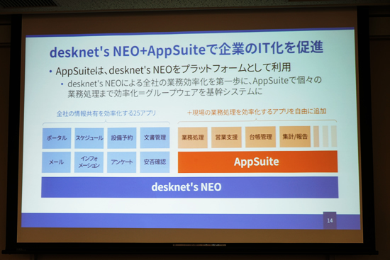 desknet's NEOは、2012年9月に発表され、民間企業や官公庁で導入が進んでいる。17年1月現在、国内の雇用者人口の約6%に相当する累計350万ユーザーが利用している。
