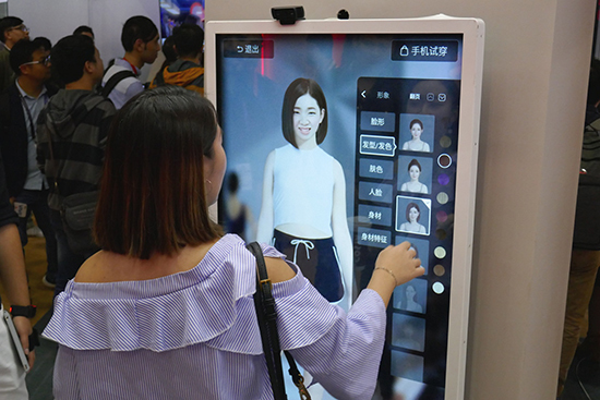 「天猫新リテール体験館」のエリアでは、最新テクノロジーを採り入れた小売店のモデル例を紹介。体験コーナーでは、店舗を訪問した顧客が、デジタルサイネ―ジを活用して、自身の外見に似合う衣服を試着できるサービスが人気を博した。「新リテール」とは、昨年の「雲栖大会」で馬会長が提唱した概念で、リテール業のオンラインとオフラインとを融合させるとともに、IT技術を活用して新たなモデルを生み出すことを指す。