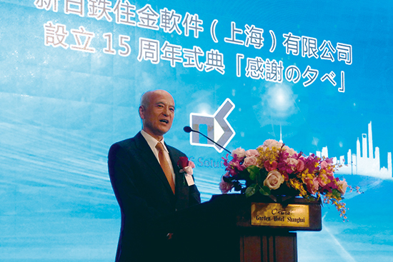 【上海発】新日鉄住金ソリューションズ(NSSOL、謝敷宗敬社長)は11月23日、中国の現地法人である新日鉄住金軟件(上海)(NSSOL上海、五味隆総経理)の設立15周年式典を開催した。日本から謝敷社長を含む上層部約20人がこの日のために訪中したほか、現地からは取引先の関係者に加え、在上海日本国総領事館の片山和之総領事、日本貿易振興機構(JETRO)上海事務所の小栗道明所長、上海日本商工クラブの村上宏理事長(上海住友商事総経理)などが出席。200人規模の盛大な式典となった。(上海支局 真鍋 武)