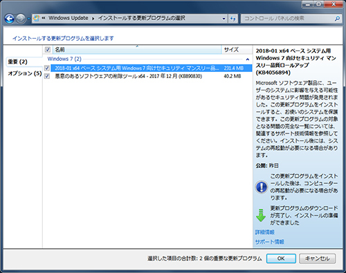 日本時間1月5日、Windows 7に対してもWindows Updateによる更新が始まった
