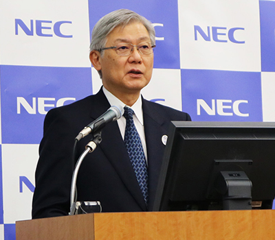 NECの海外事業の17年度(18年3月期)売上高は約7300億円の見込み。中計では20年度までに約1600億円上乗せして約8900億円まで増やしたい考え。海外セーフティ事業で約1500億円上乗せするとともに、海外向けのSDN(ソフトウェア制御ネットワーク)などを軸に伸ばす。海外向けのハードウェア販売などの減少が見込まれる事業分野もあるため、これら事業の縮小を補ってなお拡大させる。