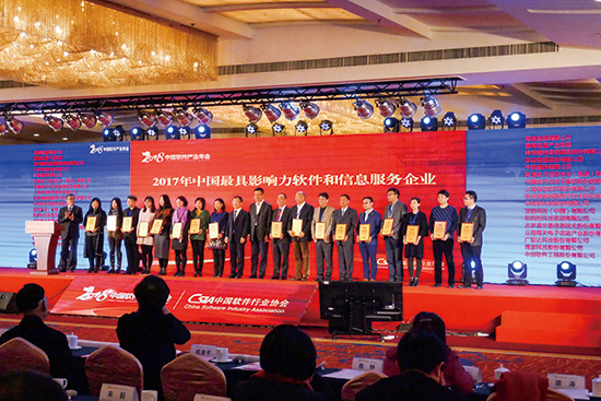 さらに年会では、17年の中国ソフトウェア・情報技術サービス業に貢献した企業や団体、起業家を表彰した。総合力を評価する「最も影響力ある企業」では50社が選定。上位10社には、南瑞集団、国網信通産業集団、神州数碼信息服務、東軟集団、中軟国際、軟通動力信息技術(集団)、中国軟件与技術服務、上海宝信軟件、杭州海康威視数字技術、中科軟科技が名を連ねた。