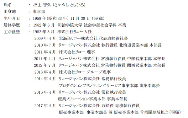 リコージャパン、専務の坂主智弘氏がトップへ、役員人事も発表