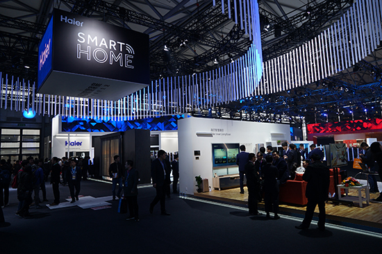 一棟のパビリオンを丸ごと使い、各ブランドの製品を並べた中国家電大手の海爾集団(ハイアール・グループ)は、パビリオンの中心にスマートホームのコーナーを設置した。中国企業では、華為技術(ファーウェイ)や、東芝の家電部門を買収した美的集団もスマートホームの展示に注力していた。