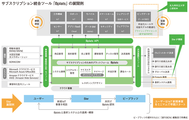 ビープラッツは、SaaSが普及し始めた頃の2006年11月、「使った分だけ課金する」サブスクリプション型の課金プラットフォームをクラウドサービスで提供する目的で創業した。主力のサブスクリプション統合ツール「Bplats」は、IoTやクラウド、MVNO、シェアリングエコノミーなど、月額課金・継続課金が必要なプロセスである注文、契約、仕入、商品、請求管理や顧客管理などの機能を備えたサービスプラットフォームだ。