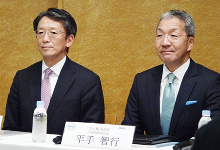 左からEMCジャパン大塚俊彦代表取締役社長、デル平手智行代表取締役社長