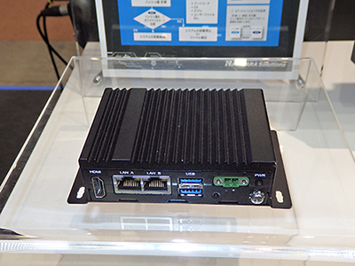 IoTセキュリティーでは、システム改ざん検知機能を搭載した手のひらサイズのPC「Tine Gateway」を参考出品。グループ会社のハギワラソリューションズが持つ技術を応用して、接続したエッジ端末のシステム改ざんをチェックする。