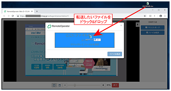 今回の新機能である「ファイル転送」では、営業担当者と顧客間で双方向に提案資料や画像、動画などマルチメディアデータの送受信(提出・受け取り)が可能となる。これにより、非対面営業中に営業担当者が転送した電子ファイルに、顧客がすぐに記入し返送したり、逆に、顧客から転送されたデータを営業担当者が即座にチェックし、内容をもとに打ち合わせたりなど、リアルタイムなコミュニケーションを実現する。特に、顧客側端末がiPhone/iPadの場合、端末のカメラ機能で撮影した写真をその場で営業担当者に転送することもできる。同機能はウェブブラウザーで利用できるため、プログラムダウンロードなど顧客の手を煩わせることがない。