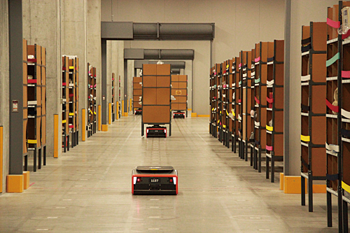 商品の注文が入ると、同社のロボットは目的の商品が保管されている棚の下に入り込み、商品を棚ごとピッキング担当者の場所まで搬送する。通常の倉庫では、ピッキング作業者は1日の業務で倉庫内を延べ10km以上歩行することも少なくないというが、ロボットの導入によって作業者の歩行がほぼ不要となるほか、商品を取り違えるミスも削減できる。