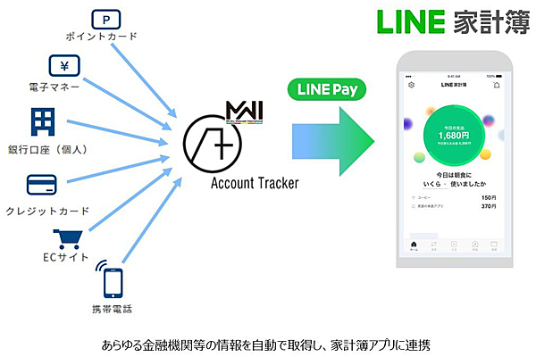 LINE家計簿は、「LINE Pay」はもとよりインターネットバンキングやクレジットカード、ECサイトなどの金融関連サービスと連携している。今回のAT導入によって「LINE」のプラットフォーム上で、日々の支出・収入状況や資産データの管理が可能となり、決済・管理というお金の流れを可視化できるようになる。今後は、さらに連携を強化することで、LINE家計簿でも証券、投資信託、保険などの管理も可能となる予定。