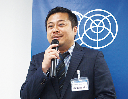 冒頭に登壇したBlackBerry Singaporeのマイケル・ヒュー氏は、「当社は、音声やテキスト、データ、ドキュメントなど、あらゆるモバイルコミュニケーションを保護するソリューションを提供している。それも、マルチプラットフォームに対応している」と、同社が提供するセキュリティーソリューションの概要を説明。また、エンドポイントのセキュリティーだけでなく、業務システムからコラボレーション環境、プロセス、自律システムのコントロールまで、さまざまなモノがつながるコネクティビティの時代に対応していくとの方針を語った。