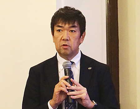 主催者を代表して挨拶した同社の後藤和彦・マーケティング本部マーケティング統括上席執行役員は「上海に営業基盤をつくり、取引企業は2800社近くまで成長した」と紹介し、「中国本土と日本を同時にサポートできる強みを生かして、皆さんの良きパートナーとして発展していきたい」と述べた。
