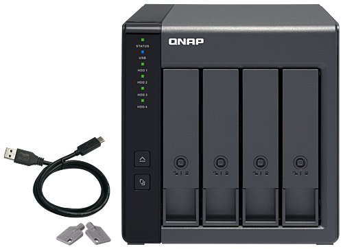 TR-004は、QNAP NASからWindows、Mac、Linuxコンピューターまで、広範囲のデバイスに対応したストレージ拡張ソリューション。特に大型の大容量ドライブがインストールできないノートPCやMacBookに適している。3.5インチSATAドライブベイとRAID構成オプションにより、大量のファイルとデータを保存でき、ドライブ障害に対する保護も万全となっている。