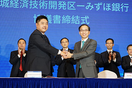 現地で同日開催された式典で、みずほ銀行(中国)の竹田和史行長は「中国経済全体は安定期を迎え、社会全体が量から質に変化しようとしている」とし、「中日スマート製造イノベーション産業パークを国際的な影響力をもつ産業区にするお手伝いをしていく」と呼びかけた。