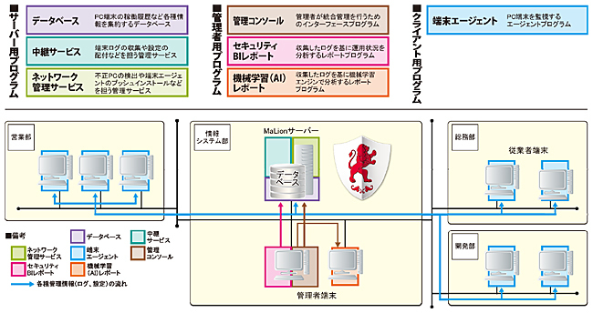 また、データベースの格納方法や通信処理の方法を改善し、社内端末2万5000台の運用環境で従来比5倍以上の高速なログ検索が可能となった。MaLionサーバーと従業者PC間の通信処理の方法を見直すことで、通信処理回数を低減。さらに、収集したログをデータベーステーブルへ格納する際の方法を見直すことで、ログの検索速度を向上した。