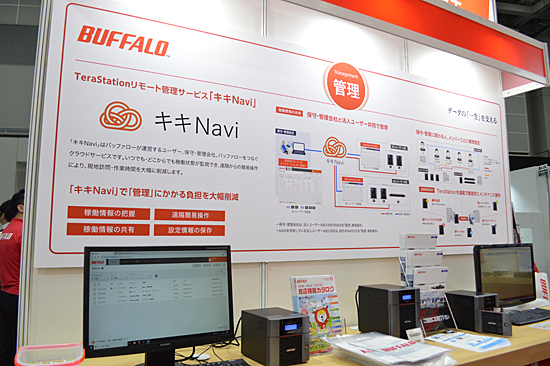 中でも注力していたのが、4月17日に運用を開始したTeraStationを管理するクラウドサービス「キキNavi」。遠隔地に設置するNASの稼働状況を保守、管理会社とエンドユーザーが共同で管理できるプラットフォームを提供し、現地訪問や作業の負担を大幅に削減する。