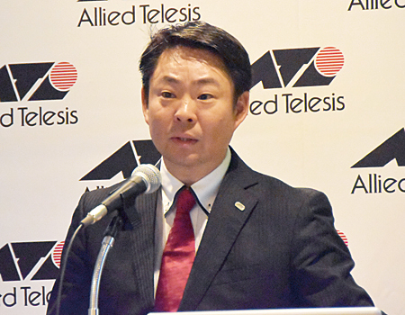 無線LAN分野では、佐藤誠一郎・上級執行役員マーケティング統括本部統括本部長は「IoTデバイスが急増する中、通信手段の一つである無線LANには、電波管理の簡素化、セキュリティ対策、移動端末の通信が不安定など、さまざまな課題がある」と説明。その解決策として、2017年に自律型ワイヤレスシステム「Autonomous Wave Control(AWC)」、18年にセル型とブランケット型を融合した世界初のハイブリッド・ワイヤレスシステム「AWC-Channel Blanket(AWC-CB)」を開発した。今回は、無線LANの導入、増設、資産管理の課題を解決するため、アクセスポイント同士を無線接続できる「AWC Smart Connect(AWC-SC)」を開発。イーサネットケーブルの敷設工事や上位スイッチの設定変更を行うことなく、アクセスポイントを導入、運用できる。(山下彰子)
