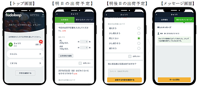 fudoloopは、食のサプライチェーンで需要と供給のバランスが保たれることがキーファクターの1つであると考え、「食産業の生産現場の見える化から始まる持続可能なサプライチェーンの構築」をコンセプトに開発したもの。サービスの名称は、「日本の風と土と、それらによって形成された人とその風土で育った美味しい作物が、これからもずっと持続的に循環し続けるように」という願いを込め、食品(food)と風土(fudo)をかけて、fudoloopと名付けた。