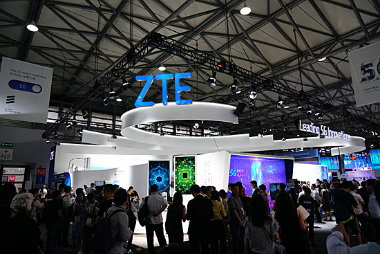 入場門から最も近い展示棟では、ファーウェイが他社の2倍近いスペースを確保し、展示エリア上部に「5G is ON」の文字を掲げた。担当者によると、準備段階だった昨年から前進し、すでに5Gを活用する段階に入ったことをアピールする狙いがあるという。