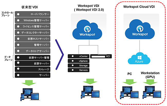SCSKは16年12月から、従来型VDIの複雑に入り組んだアーキテクチャーをクラウドサービスとして提供する「Workspot VDI」の国内販売を始めていた。今回、新たに提供するWorkspot Cloud VDIは、VDIがもたらす管理のさらなる簡素化や柔軟性を求めるニーズ、また固定料金での提供による利用コストの試算のしやすさや、バックエンドインフラを管理する手間を避け、業務効率化を図りたい企業のニーズにも応えたサービスメニューとなっている。